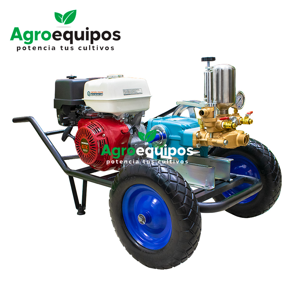 - Motor Honda GX390 de 13 HP: Este motor de Honda, ampliamente reconocido por su confiabilidad y durabilidad, garantiza un funcionamiento potente y eficiente, ideal para largas jornadas de fumigación en el campo.